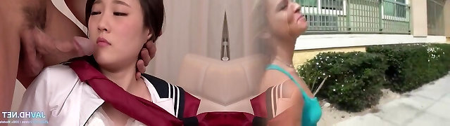 Wild Japanese Schoolgirl Loves Sucking Cock - Huge Cumshot On Ass