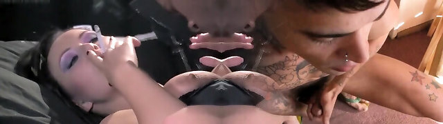 Sexy Jessica Nyx smokes a cigarette and shows baps