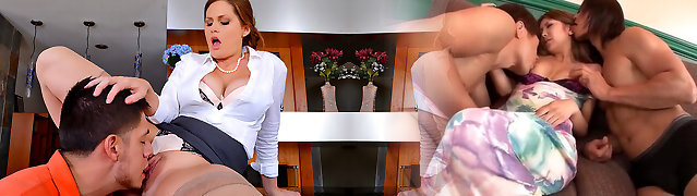 Voracious black haired MILF gets her pussy slurped by naughty relative