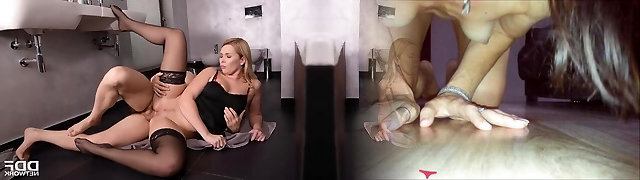 Huge breasted blonde bitch in black stockings pleases condomed schlongs
