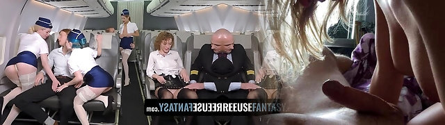 Unforgettable flight with sumptuous stewardesses turned into a group sex