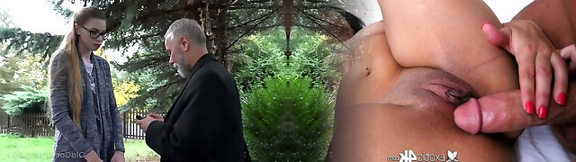Flat chested Russian tramp Milena Devi is pounded doggy by older man