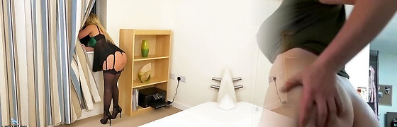 Mature blonde bombshel in a miniskirt puss pounded from behind