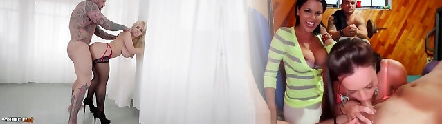 Giant bottomed MILF Ash-blonde Fesser happily rides her tattooed stud