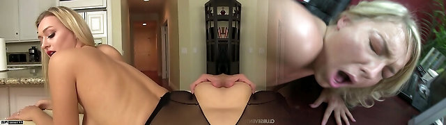 Hot Blond Teen In Black Pantyhose Ride A Big Cock