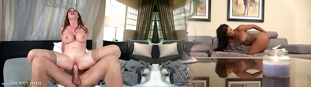 Cougar in stockings Lisa Ann eaten out and smashed by Big Black Cock stud