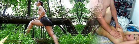 Corded up girl Jezebeth is face fucked by kinky pervert deep in the forest