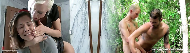 Sister nymphomaniac blowjob and pokes him strapon in anal.