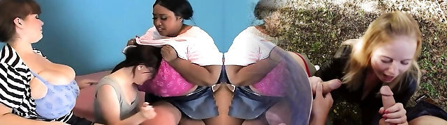 Crazy Reverse Gangbang with Femdom Strap On Dildo Sex and Biting Balls