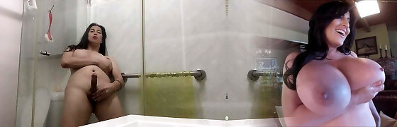 After fingering herself in the toilet mischievous Allora Ashlyn rides jizz-shotgun
