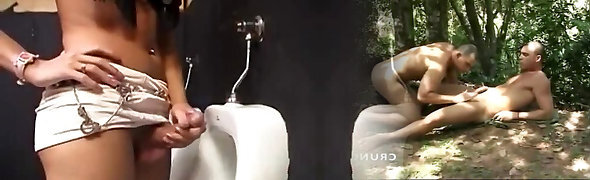 Asian schoolgirl sweet teenager Ladyboy upskirt and jism on her pantyhose on public rest room