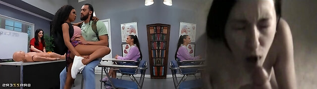 Fit Huge-boobed Dark-hued Has Crazy 3-some With Her BF And Brunette MILF Teacher During the First-aid Lesson