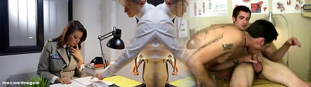 Military nymphs have a threesome with their commanding officer
