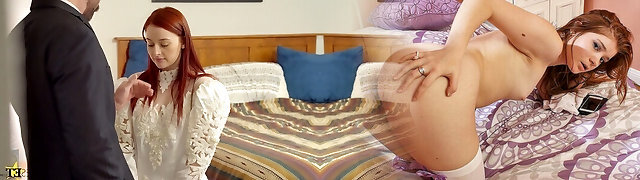 Rough sex with hot red haired bride Skyla Novea in front of the mirror
