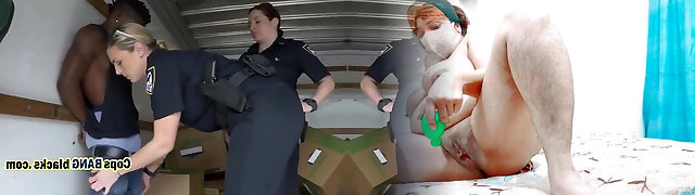 Sex-hungry police women fuck one arrested hefty black dude