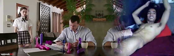 Stepdad fucks his wife and their stepdaughter