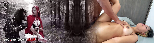 The red riding spandex hood Brind Love gets ravaged by woodcutter outdoors
