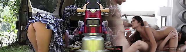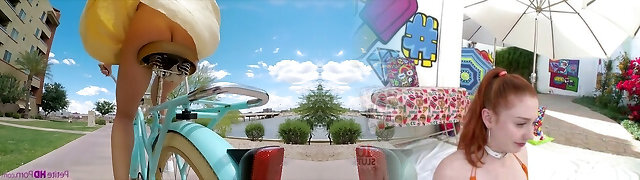 Pantless girl Avi Love is riding her bicycle before a steamy sex with stranger