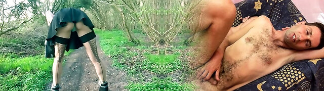 British Slut Wife In French Lace Pantyhose Stripping Off In The Woods