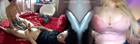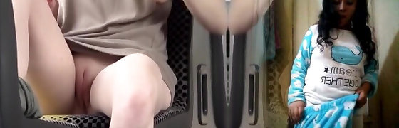Lewd cam slut is showing off her private parts with her neighbor in the room